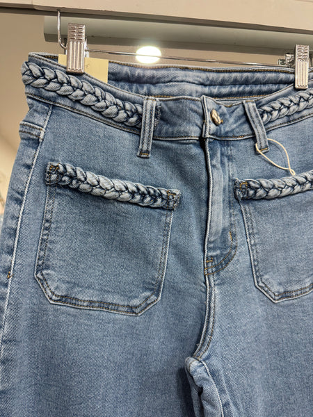 Looking for a new Denim look? These jeans have fabulous design detail. Love the plaited waistband and front pockets. Your new favourite jeans have arrived.