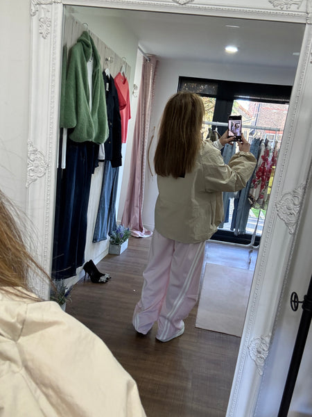 Lightweight and the perfect throw over for walking the dog or running to the gym. Style your way with jeans, or with the matching Shelley joggers. Sold separately. Love the tie details and handy pockets