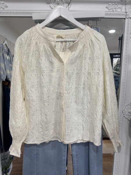 This blouse is fully made from lace. The beautiful rich cream colour is perfect for the season. Pair with any colour denim for a polished look.
