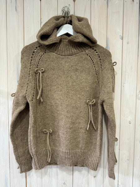 An exciting new brand to TWE. We love the delicate bows that adorn this unique knit. Style with pleather or jeans this winter.Size S/M : 6-12Size M/L: 14-16Fibre Composition: 40% Acrylic 30% Polyamide 25% Polyester 5% WoolHand Wash Only
