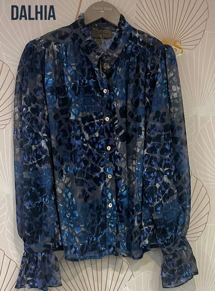 Scarlet Roos is pulling all the stops out this season.  We love the print on this blouse.  In two colourways, we love the ruffle neck and cuff detail and battered gold buttons.  Elevated and elegant.  Made in France.